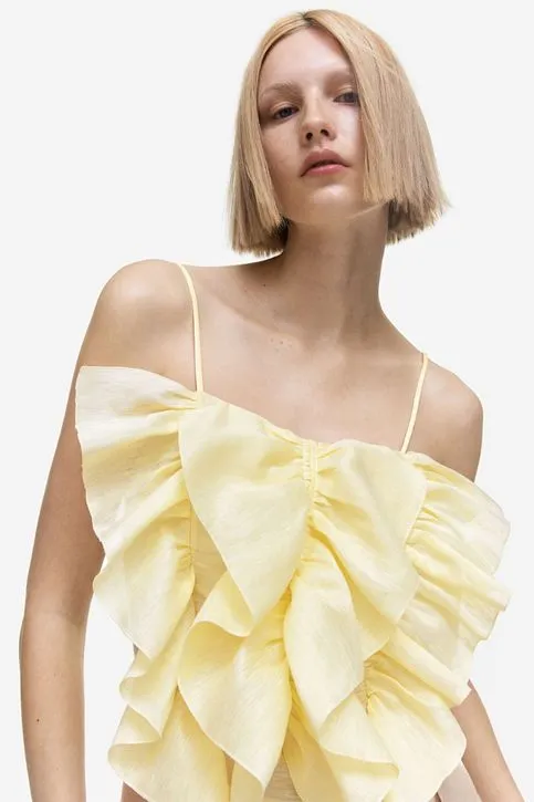 The H&M Linen Blend Flowy Top is simply lovely. The linen blend provides a cool, light feel, perfect for summer. With its flared details, this top adds a feminine touch to any outfit. An elegant and comfortable choice to stand out on any occasion.
